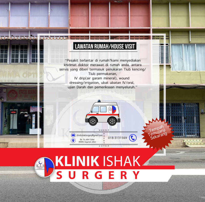 sekiranya anda/ahli keluarga anda menghadapi kesulitan untuk pergi ke klinik untuk medapatkan rawatan, anda boleh call kami untuk doktor dan staff datang ke rumah anda untuk melakukan pemeriksaan dan rawatan